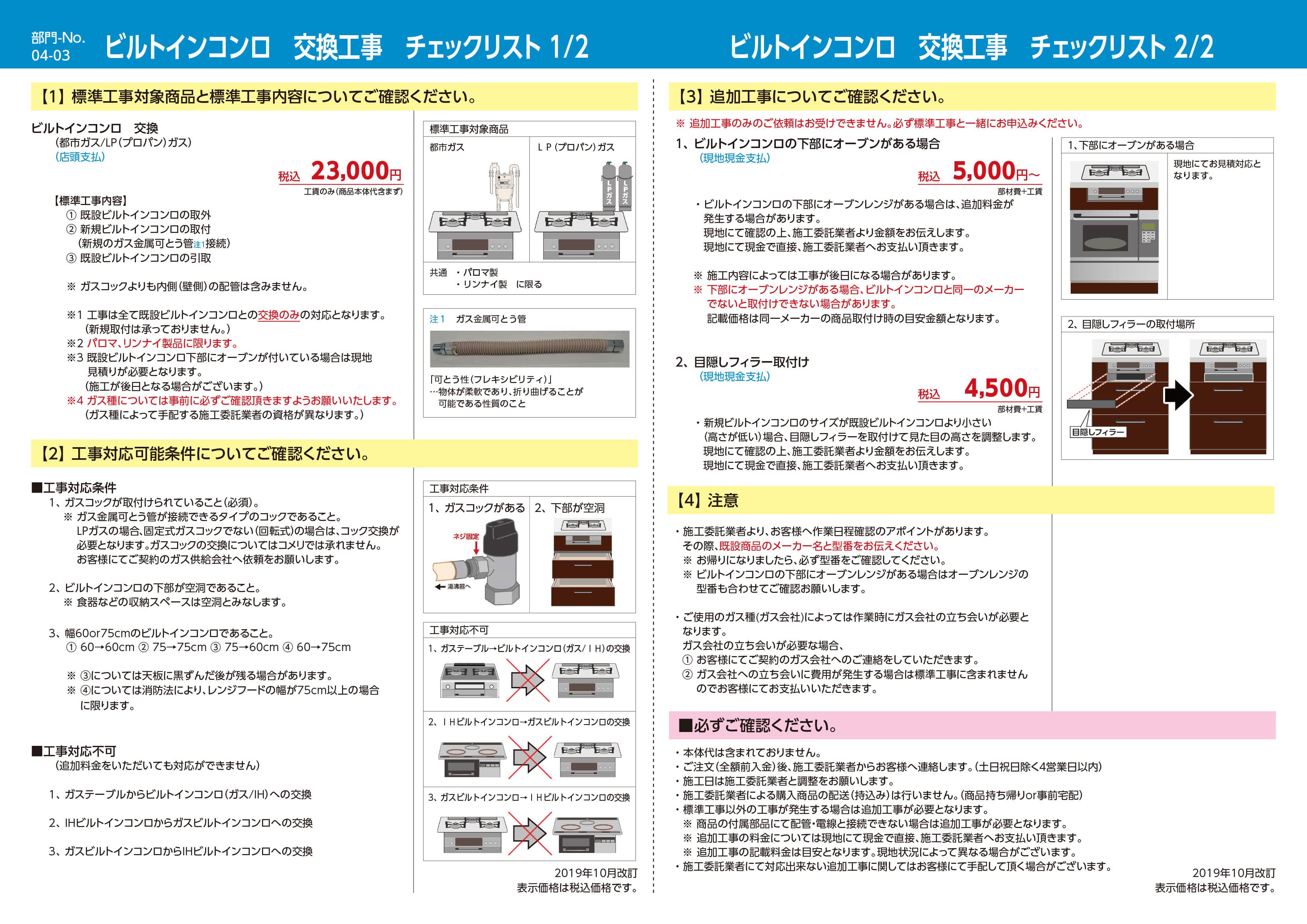 ※工事は全て既設ビルトインコンロとの交換のみの対応となります。
