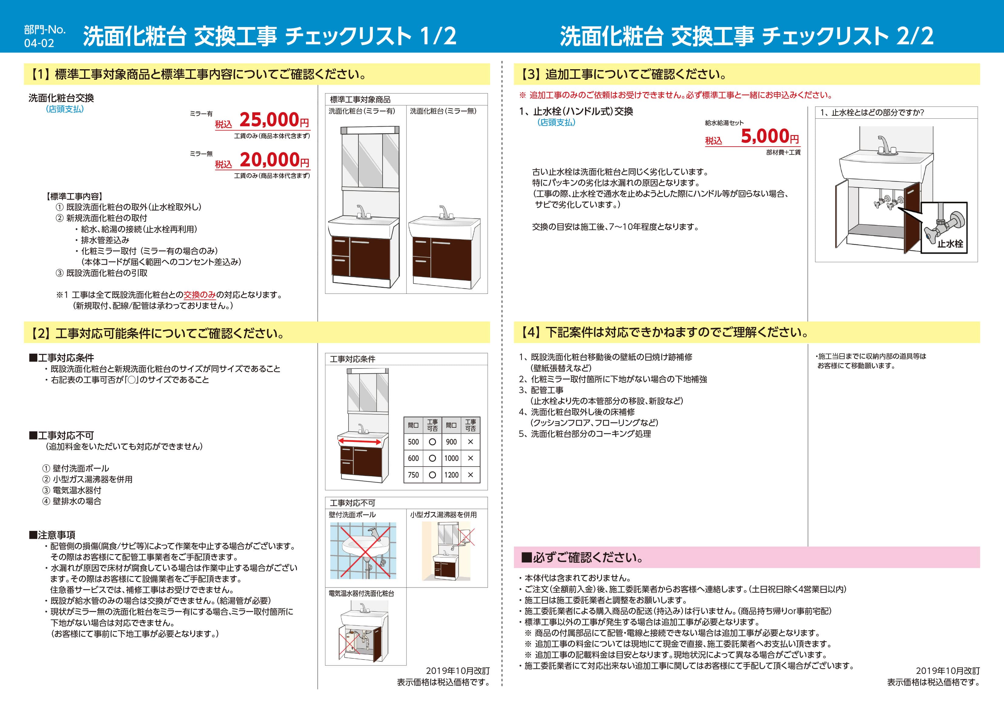 ※工事は全て既設洗面化粧台との交換のみの対応となります。