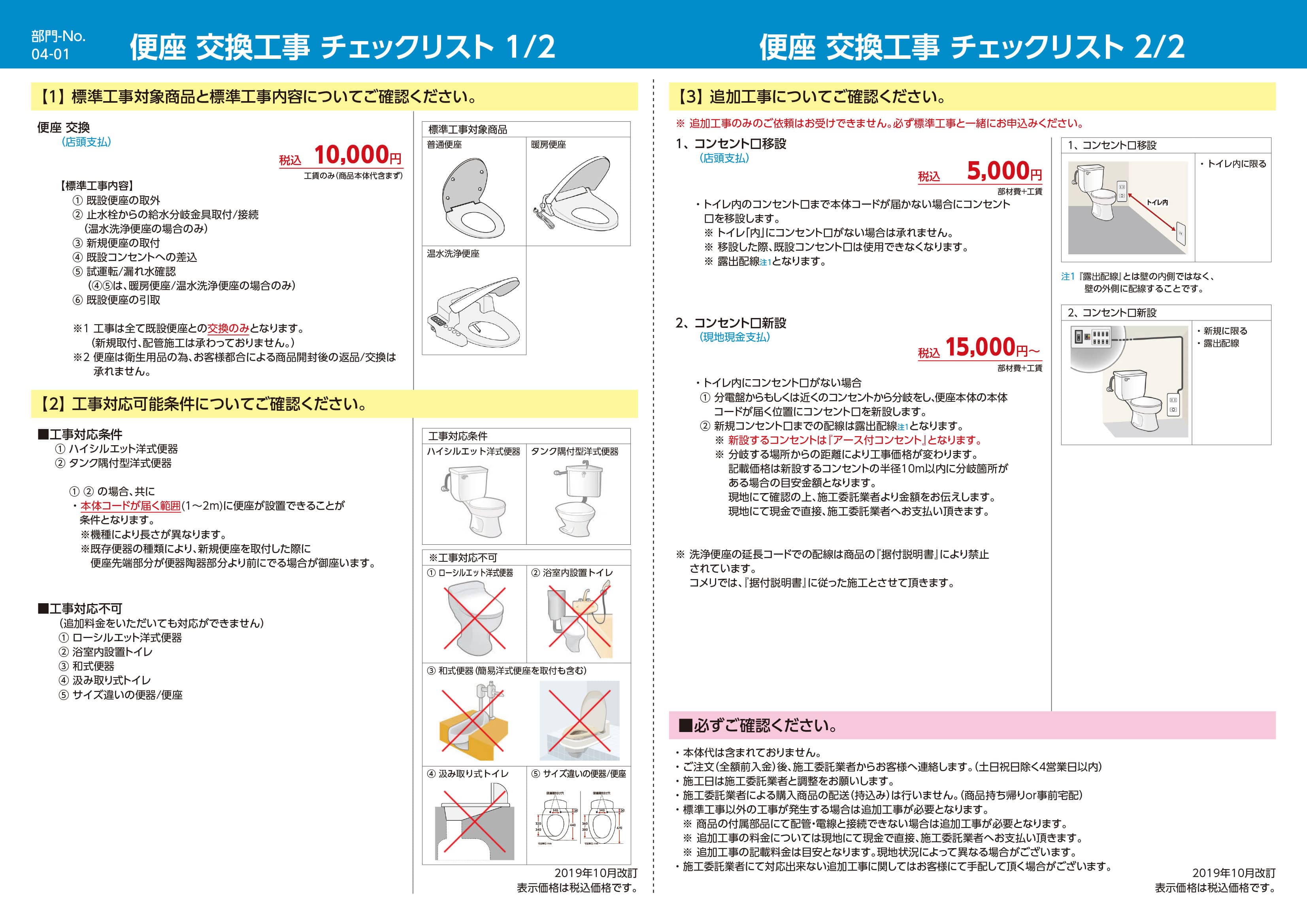 ※工事は全て既設便座との交換のみとなります。
