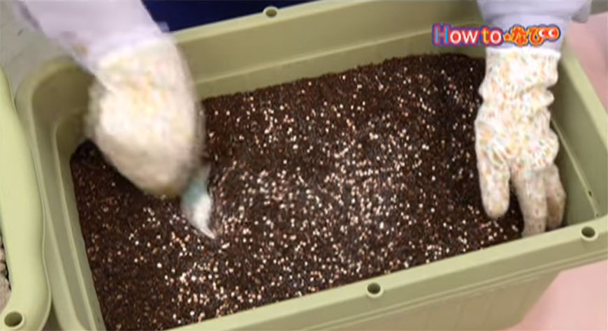 深いプランターに鉢底石を敷き、よくならしておきます。